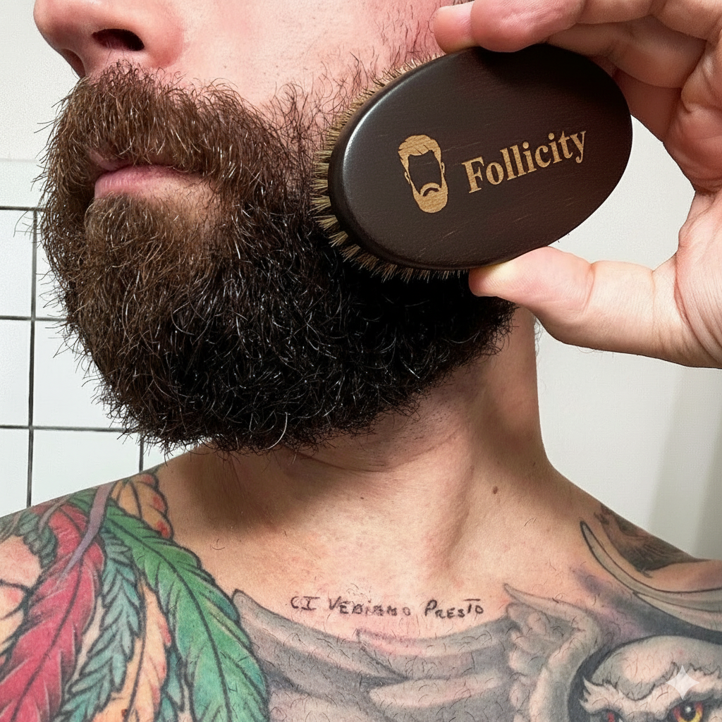 Четката за брада е изработена с дървена дръжка и висококачествен естествен косъм от глиган. Тя нежно разресва брадата, стимулира кръвообращението и поддържа косъма здрав, мек и подреден. Осигурява комфорт на кожата, предотвратява дразнене и прави ежедневната грижа за брадата лесна и ефективна.